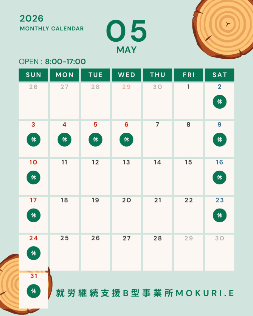 【モクリエ】5月開所日のお知らせ
